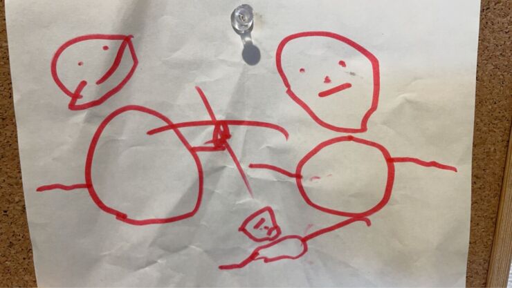 大人の憂鬱な気持ちとは裏腹に子どもたちは雪が降ると大喜び。保育園では雪だるまを作ってそれを見ながらお絵描きしたそうです。